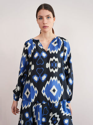 Glory of the Snow Blouse Ikat Black Royal Blue