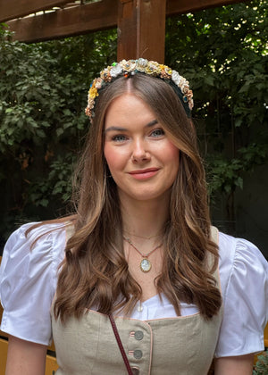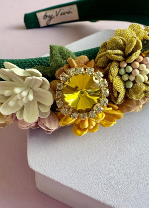 Haarreif mit Blumen und Schmucksteinen