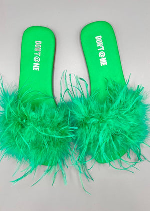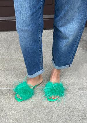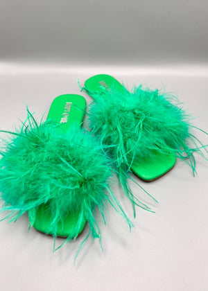 Riemchen Pantoletten aus Leder mit Federn